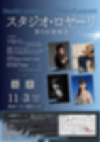 Jasper5月29日「スタジオ・ロヤーリ 第3回演奏会」のお知らせ来る2024年11月3日(日)17:00(16:30開場)、当ホールにおいてピアノ吉永哲道、荒川浩毅、戸澤正宇、新田雛菜、以上4氏による「スタジオ・ロヤーリ 第3回演奏会」が開催されますのでお知らせいたします。皆さまお誘い合わせのうえ、是非ご来場ください。<お問い合わせ>スタジオ・ロヤーリMail:music.event.concert@gmail.com<チケットのインライン購入はこちら>https://docs.google.com/forms/d/1Z83Nid1jzcZt7vBmESFYPs-NbdSZJaFYDJvqf2LulOg/edit