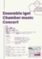 Jasper10月6日「Ensemble Igel Chamber music Concert」のお知らせ来たる2024年11月24日(日)14:00(13:30開場)、当ホールにおいてアンサンブル春、クァルテット・リモーネ、MANAカルテット、アンサンブル・いーゲル、以上4団体による「Ensemble Igel Chamber music Concert」が開催されますのでお知らせいたします。入場無料のコンサートです。みなさまお誘い合わせのうえ、ぜひご来場ください。<お問合せ>Mail:ensembleigel@gmail.com