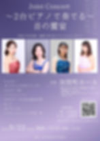 Jasper7月26日「Joint Concert ~2台ピアノで奏でる~ 音の饗宴」のお知らせ2024年9月22日(日)15:00(14:30開場)、当ホールにおいてピアノ吉田明香音、富樫桃子、西村ゆき乃、西川真衣、以上4氏による「音楽大学の先輩・後輩で奏でるスペシャルコンサート”Joint Concert ~2台ピアノで奏でる~ 音の饗宴”」が開催されますのでお知らせいたします。みなさまお誘い合わせのうえ、ぜひご来場ください。<お問合せ>Mail: pianoconcert.a@gmail.com